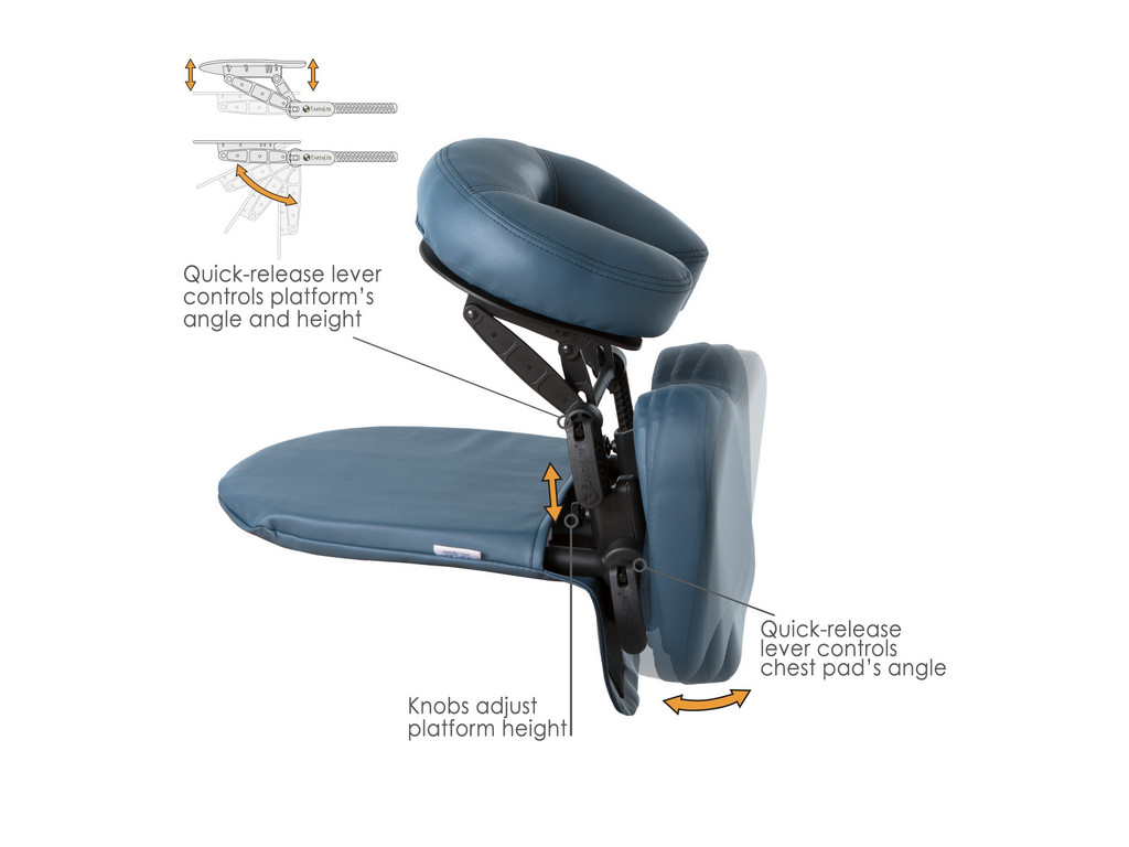 Προσαρμόζεται σε δευτερόλεπτα σε μια σταθερή επιφάνεια (τραπέζι, γραφείο). Ρυθμίζεται πανεύκολα. Προσφέρει υποστήριξη στο στέρνο και το κεφάλι του πελάτη σας, ακόμα και για άτομα σε αναπηρικό καροτσάκι. Για ανάρρωση από οφθαλμική εγχείρηση-βιτρεκτομή.