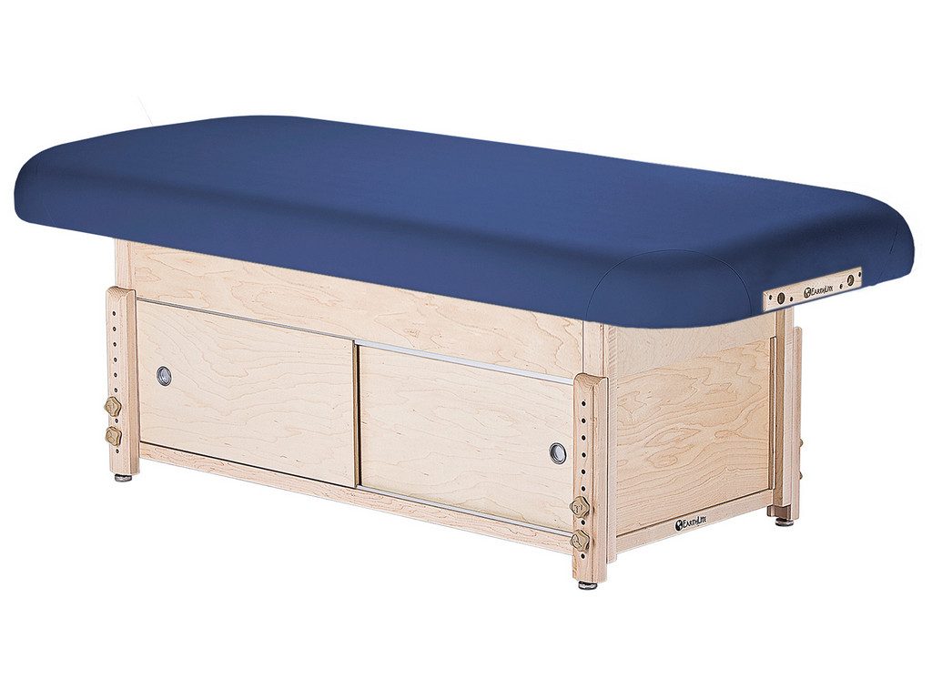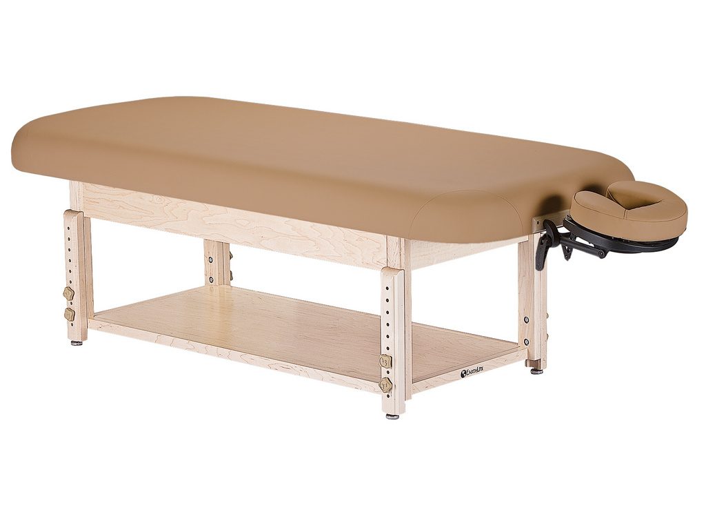 Ένα επαγγελματικό κρεβάτι μασάζ με στέρεα κατασκευή.